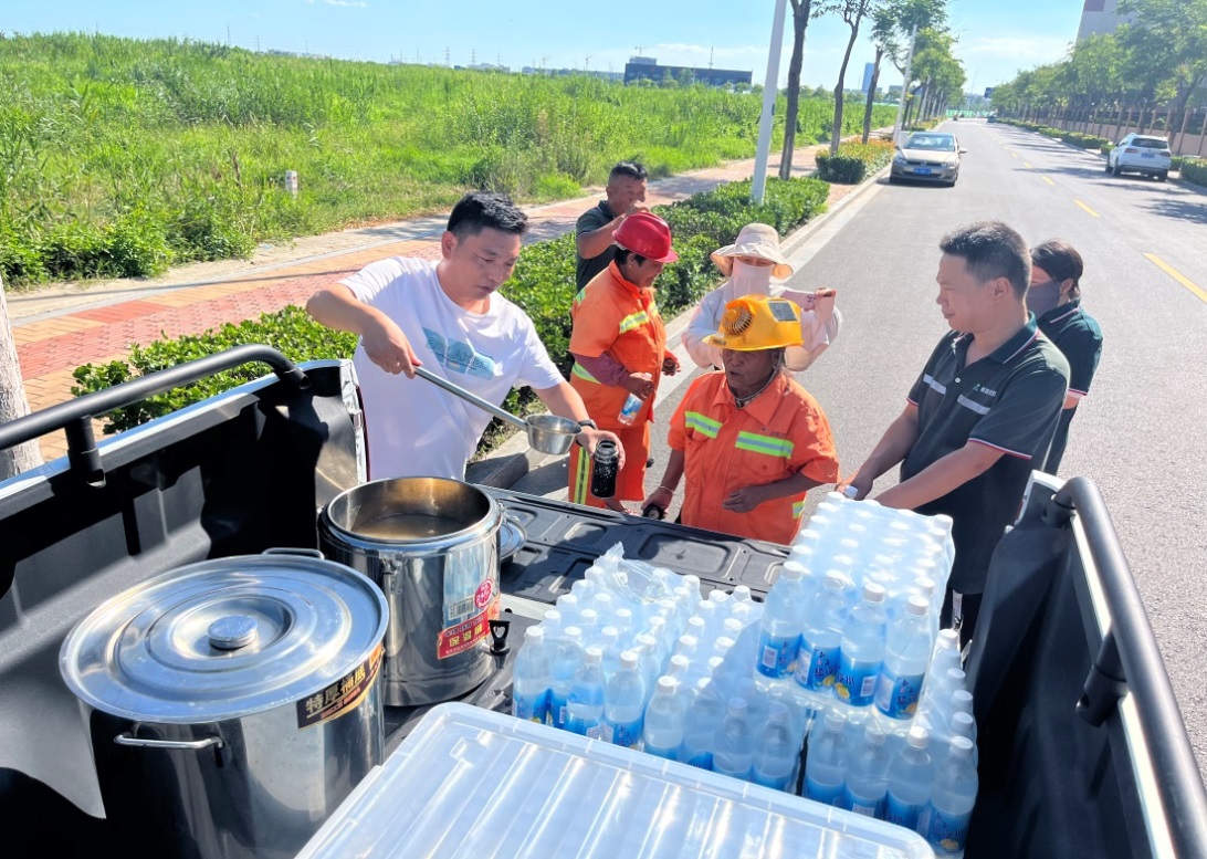 發(fā)放防暑飲品,為工人送清涼。組織各外包單位準(zhǔn)備綠豆湯、鹽汽水等防暑降溫飲品,并配送到工人手上,讓每個(gè)工人都能及時(shí)喝到消暑解渴飲品,感受清涼與關(guān)愛。