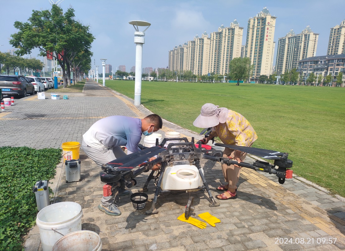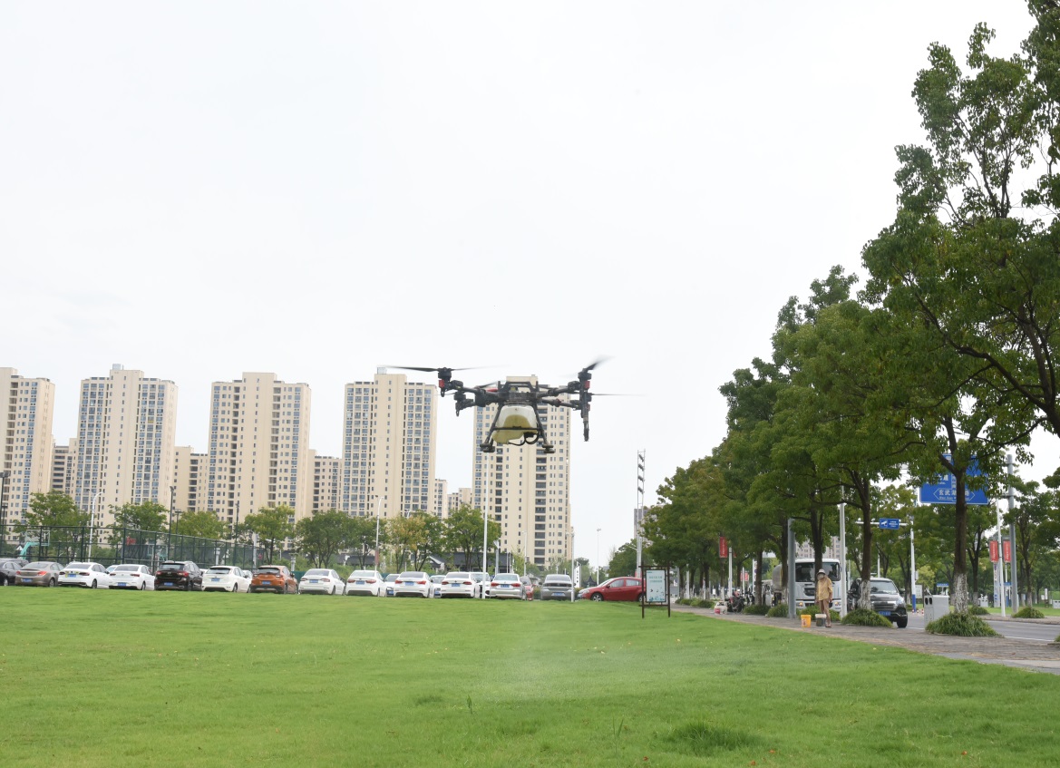 此次為園區(qū)首次采用無人機噴灑農(nóng)藥,在防治前,建發(fā)公司綠化管理人員和路段養(yǎng)護(hù)技術(shù)人員多次實地勘探區(qū)域內(nèi)試驗點,結(jié)合人流量等多種因素,最終噴灑農(nóng)藥區(qū)域選擇在中央商務(wù)區(qū)。在專業(yè)技術(shù)人員的操控下,植保無人機按預(yù)設(shè)路線不斷前進(jìn),細(xì)密的噴液滴通過霧化器處理后均勻地噴灑在草坪上。不到4小時,一次全面精準(zhǔn)的病害防治工作已經(jīng)高效完成。