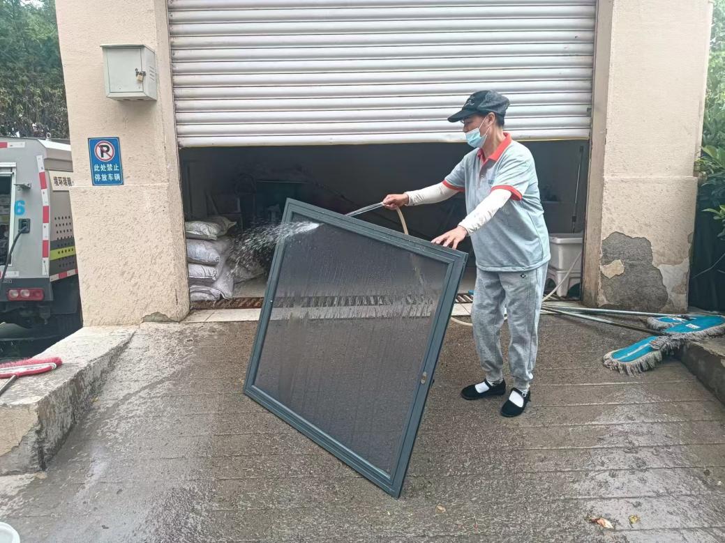 地墊、紗窗清洗區(qū)也備受居民歡迎,工作人員用高壓水槍、刷子等清洗工具,通過洗、刷、沖等環(huán)節(jié),灰撲撲的地墊、紗窗經過“洗禮”后煥然一新。