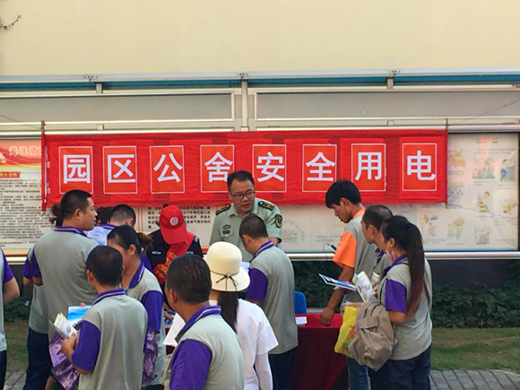 為提升入住員工安全用電素質(zhì),強(qiáng)化安全生產(chǎn)意識(shí),認(rèn)真落實(shí)園區(qū)安委會(huì)關(guān)于開展安全生產(chǎn)大檢查活動(dòng)。8月17日公司協(xié)同園區(qū)消防大隊(duì)組織開展安全宣傳日活動(dòng),通過(guò)現(xiàn)場(chǎng)咨詢、拉宣傳標(biāo)語(yǔ)、向行人發(fā)放安全用電的宣傳冊(cè)、耐心向群眾宣傳講解電力安全知識(shí)等方式進(jìn)行安全生產(chǎn)宣傳咨詢活動(dòng)。