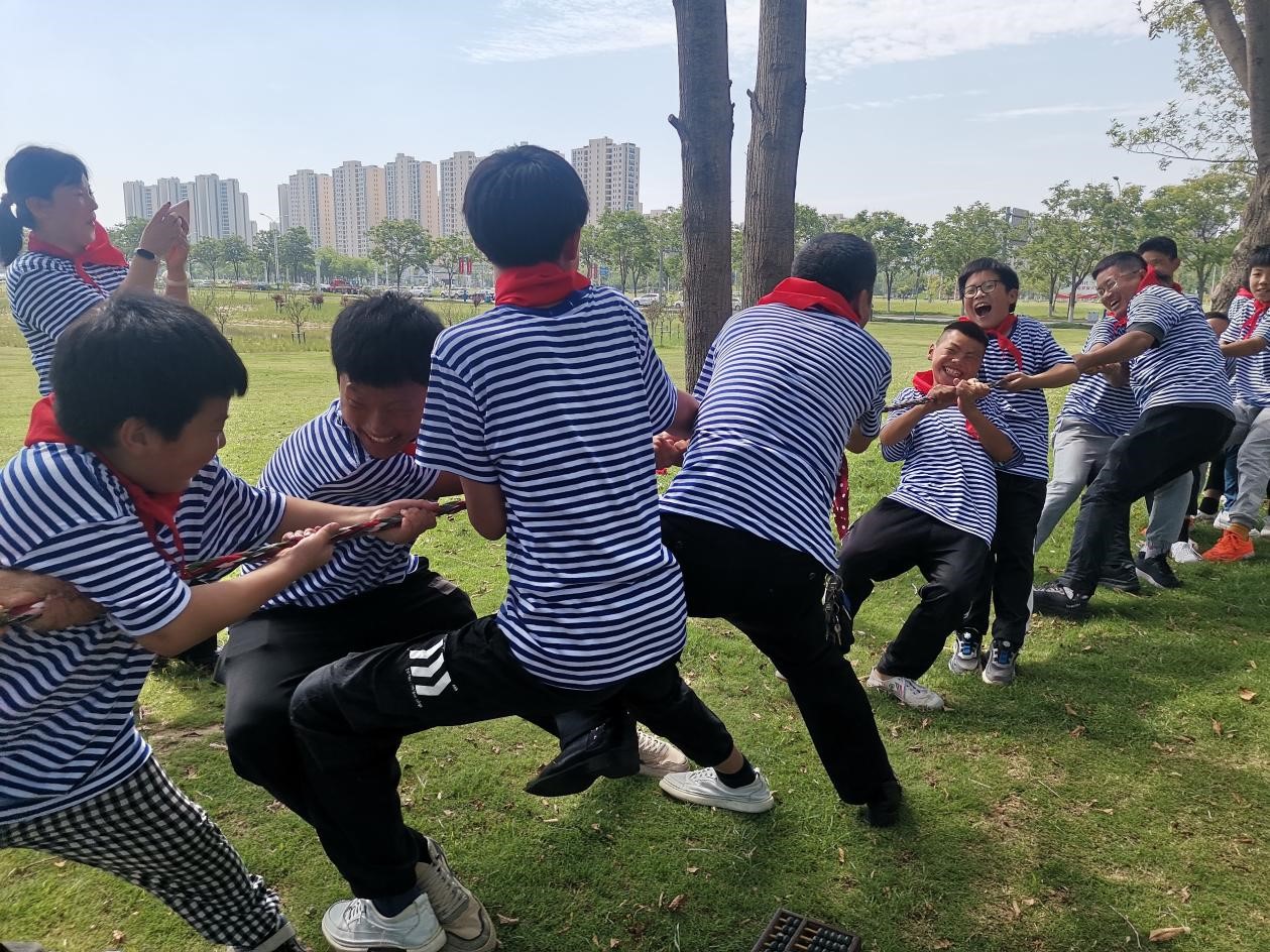 活動從丟手絹游戲拉開序幕,擊鼓傳花,兩人三足,挖呀挖,跳大繩,自由組隊的拔河比賽將整場活動推向高潮。孩子們在活動中增加了自信心,鍛煉了與人交流的能力和團隊協(xié)作能力,在歡快的活動中度過了一個充實的周末。