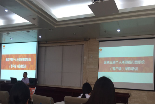 根據(jù)國家稅務(wù)總局要求,江蘇將于2016年10月1日起正式上線金稅三期個人所得稅扣繳系統(tǒng),扣繳義務(wù)人在進行網(wǎng)上個稅明細扣繳申報時,需采用金稅三期個人所得稅扣繳系統(tǒng)。為了公司能順利完成個稅扣繳工作,9月1日下午,公司財務(wù)人員參加了宿遷地稅舉辦的金稅三期個人所得稅代扣代繳系統(tǒng)培訓(xùn)。