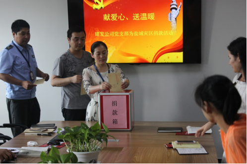 黨課結(jié)束后,黨支部組織開展“獻(xiàn)愛心、送溫暖,向鹽城災(zāi)區(qū)捐款活動”,19名黨員、預(yù)備黨員和入黨積極分子極響應(yīng)號召,踴躍參與到捐款行列中,向受災(zāi)地區(qū)群眾奉獻(xiàn)自己的一份愛心,共獲得捐款2900元。同時(shí),黨支部也向公司全體職工發(fā)出了向?yàn)?zāi)區(qū)捐款的倡議,目前捐款工作正在進(jìn)行,捐款活動結(jié)束后,獲得的款項(xiàng)將通過園區(qū)工委辦公室轉(zhuǎn)交鹽城災(zāi)區(qū)。