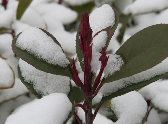 白雪映襯下的綠葉