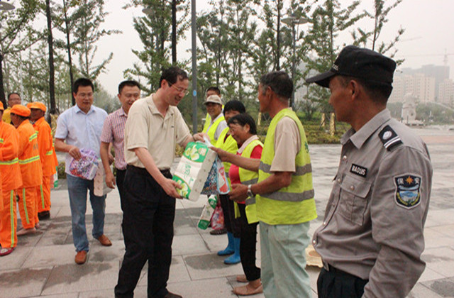7月23日上午,園區(qū)黨工委委員、規(guī)劃建設(shè)局局長(zhǎng)周原帶隊(duì)慰問了奮戰(zhàn)在一線的城市維護(hù)作業(yè)人員,給他們送上清涼、送上關(guān)愛。